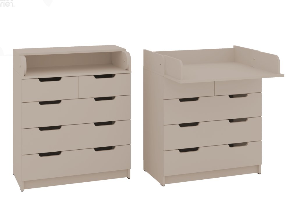 - 2v1 Design – Tato komoda slouží jako přebalovací pult a po složení desky se snadno přemění na prostornou zásuvkovou komodu s nikou, čímž ušetří místo a přizpůsobí se vašim potřebám i po přebalovacím období.