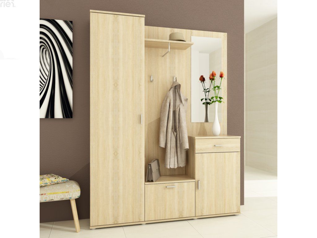 Vytvořte v předsíni elegantní a praktický prostor s předsíňovou stěnou SHIRIN v moderním dekoru dub sonoma. Tento funkční nábytek kombinuje úložný prostor, věšák a stylový design, který skvěle doplní každou předsíň.