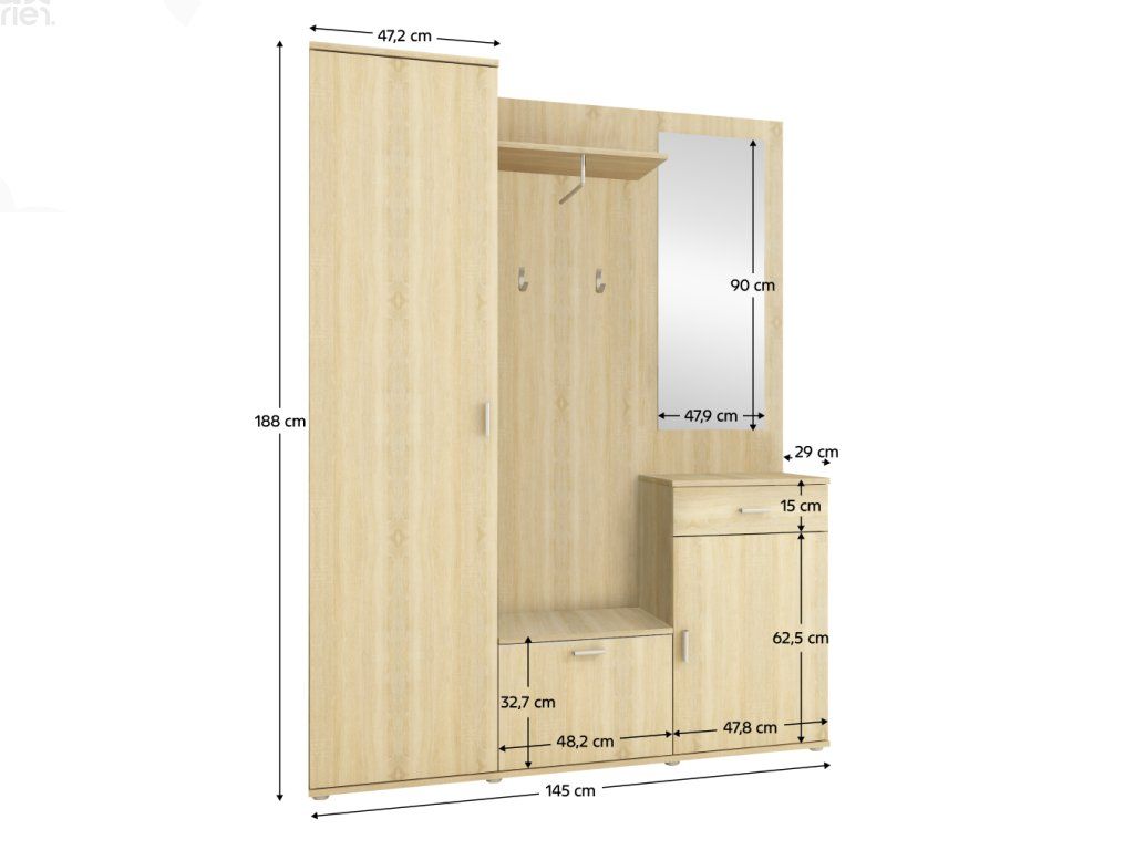 Rozměry (ŠxHxV): 144 × 29 × 188 cm – vhodná do menších i větších předsíní