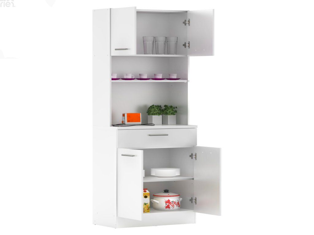 Korpus je vyroben z kvalitní laminované DTD, která je odolná vůči běžnému opotřebení a zároveň nenáročná na údržbu. Promyšlené vnitřní uspořádání nabízí čtyři dvířka, policový systém a prostornou zásuvku, díky čemuž budete mít veškeré nádobí i další potřeby přehledně uložené.