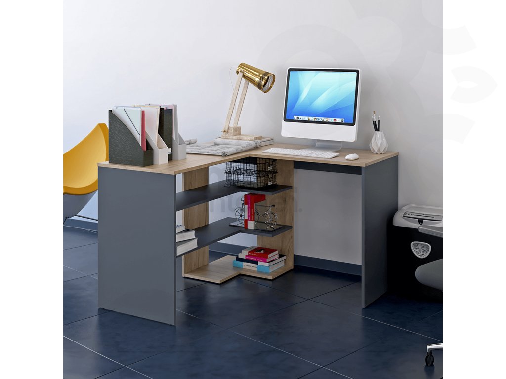 Psací rohový stůl BLAYNE grafit / dub artisan – praktický a stylový koutek pro práci i studium