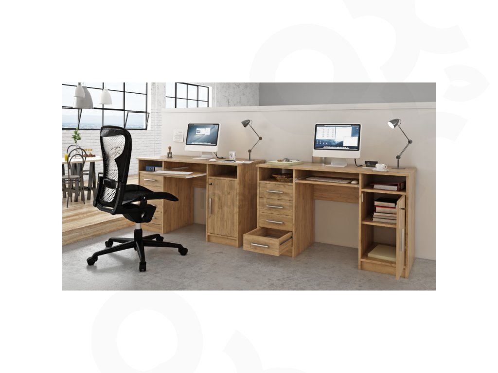 Na levé straně se nachází čtyři prostorné šuplíky s rozměry 31,4 × 41,6 × 12,6 cm, ideální pro dokumenty, psací potřeby nebo drobnější předměty.