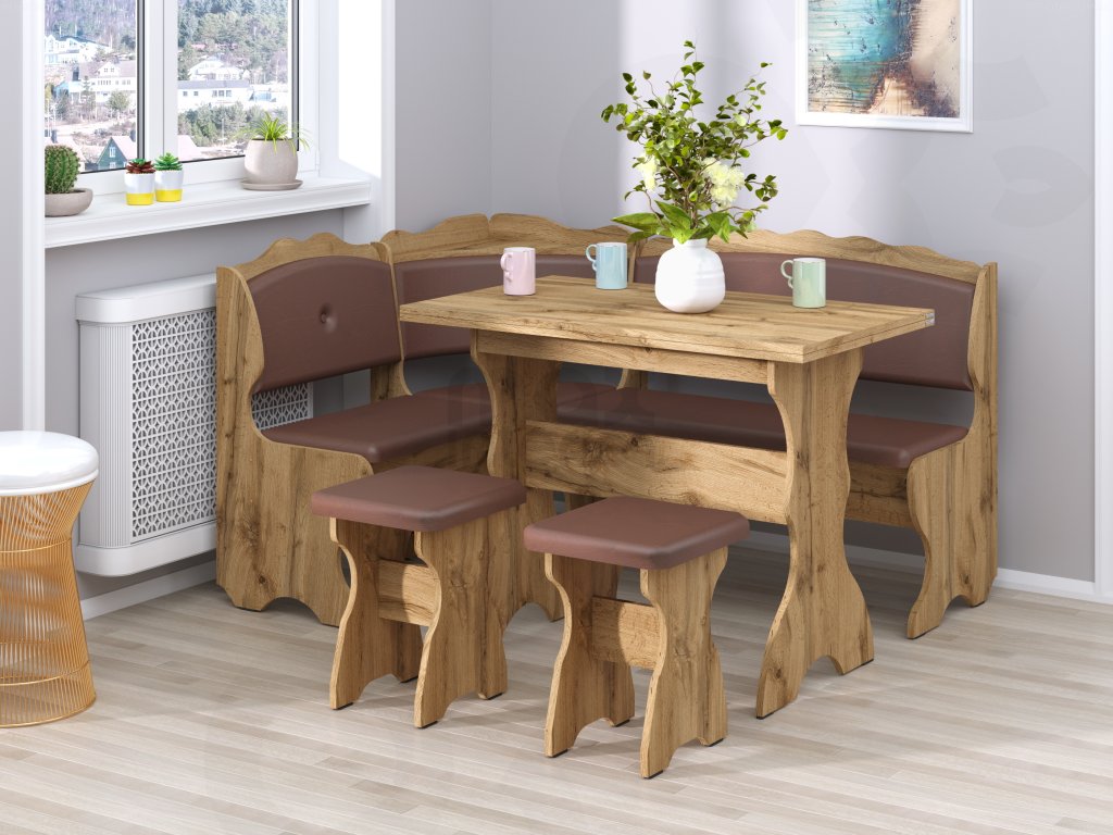 Rohová lavice CEZAR SET, dub tacho, koženka hnědá