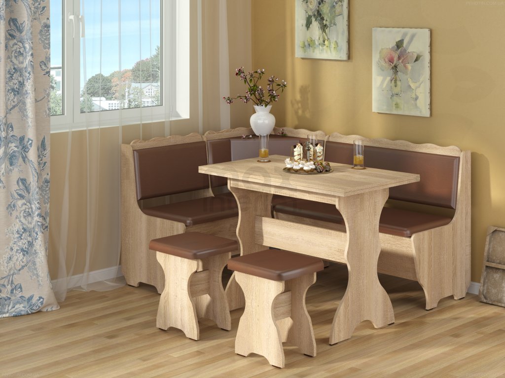 Rohová lavice GRAF SET, dub sonoma, koženka hnědá
