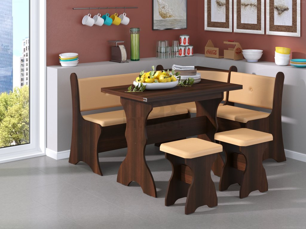 Rohová lavice MARKIZ SET, ořech tmavý, koženka káva