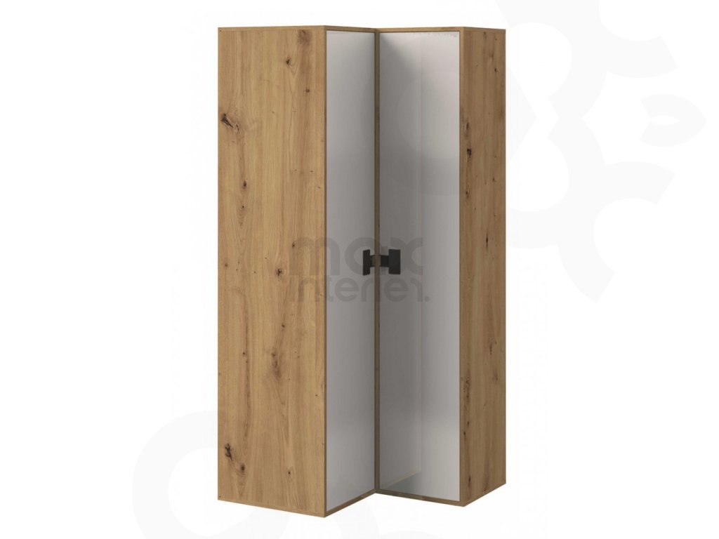 Rohová šatní skříŇ BREYSTON 3 do dětského pokoje | dub artisan / bílý lesk