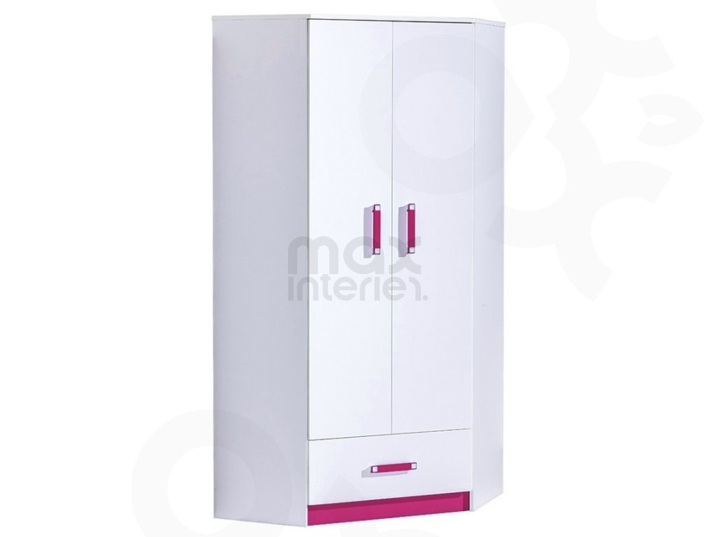 Rohová šatní skříň do dětského pokoje TRAFICO 2 bílá/růžová