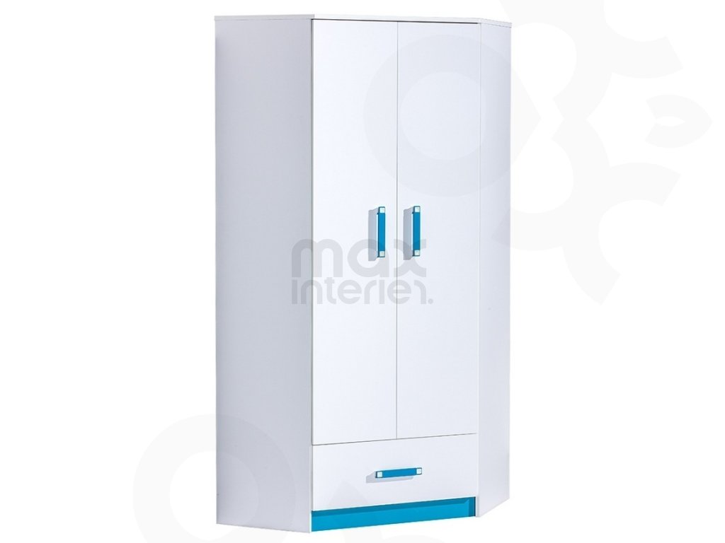 Rohová šatní skříň do dětského pokoje TRAFICO 2 bílá/tyrkys