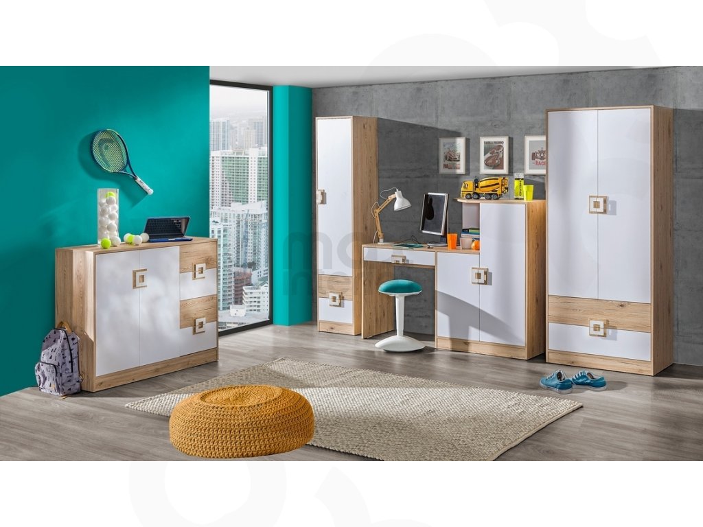Tento nábytek je ideální volbou pro rodiče, kteří chtějí kvalitní, bezpečný a odolný sektorový nábytek. Skříň lze snadno kombinovat s dalšími díly z kolekce Nikolas, takže si můžete sestavit pokoj přesně podle přání vašeho dítěte.