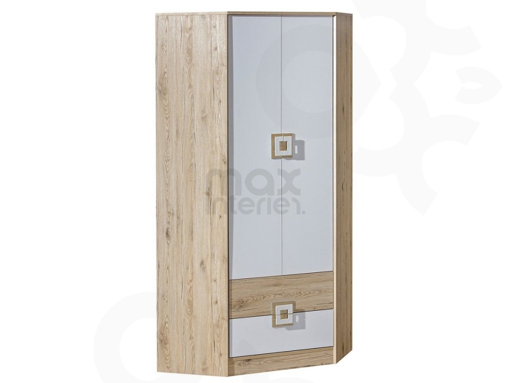Hledáte moderní a praktickou skříň pro dětský nebo pokoj dospívajícího? Šatní rohová skříň NIKOLAS 2 z kolekce Dětský pokoj Nikolas nabízí nejen elegantní design, ale i maximální funkčnost. Díky kombinaci světlého dubu a bílé se hodí do každého interiéru a zajímavé úchyty přitáhnou pohled každého dítěte.