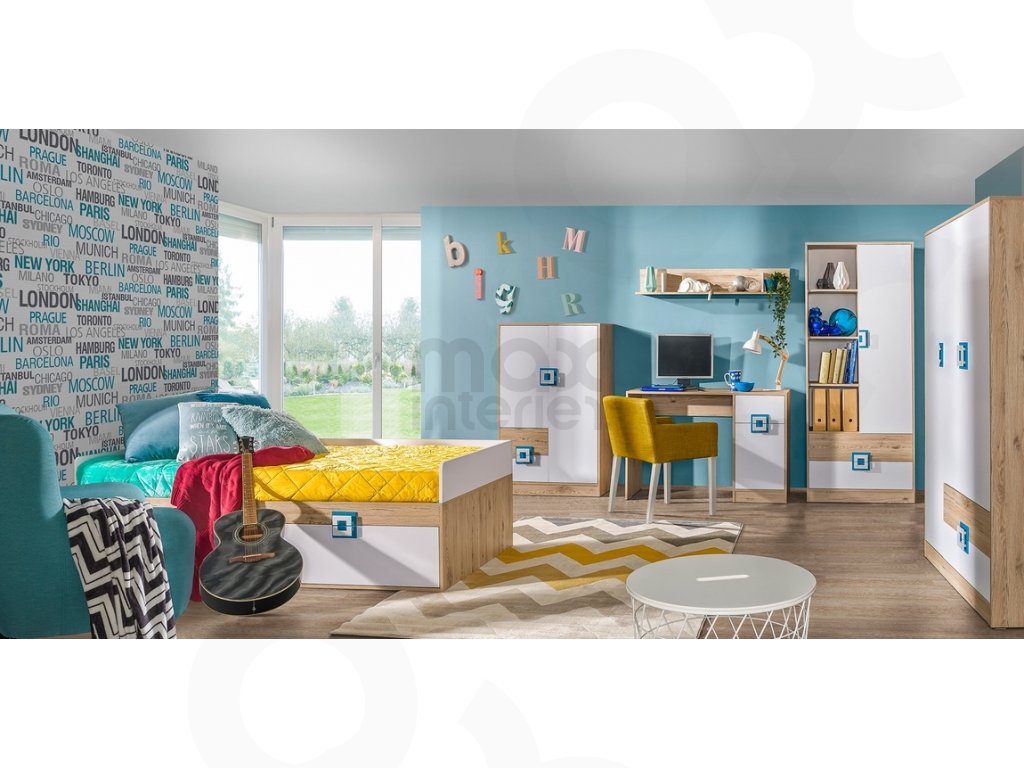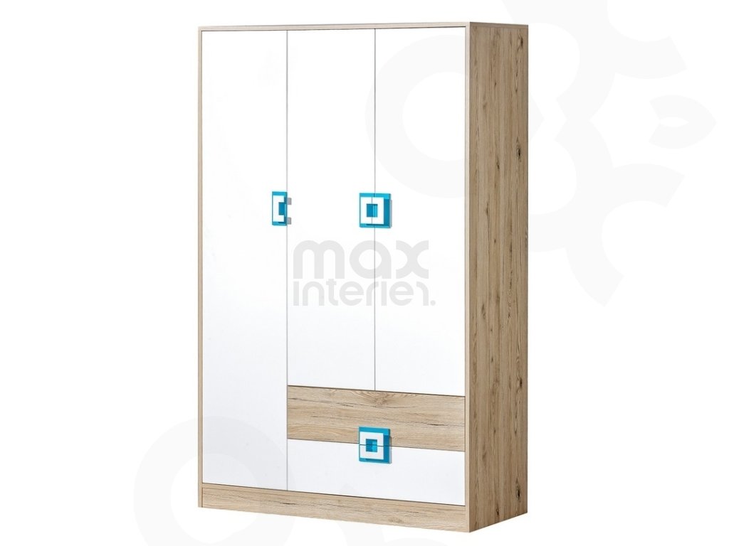 Šatní skříň do dětského pokoje NIKOLAS 3 | dub jasný / bílá / tyrkys