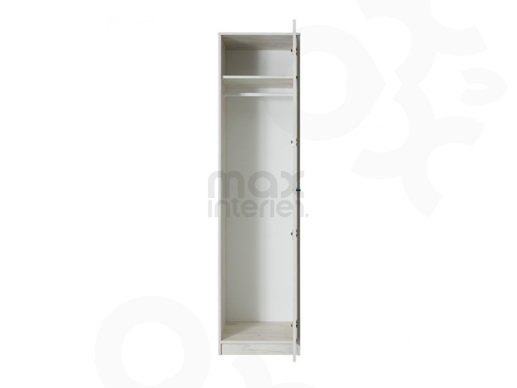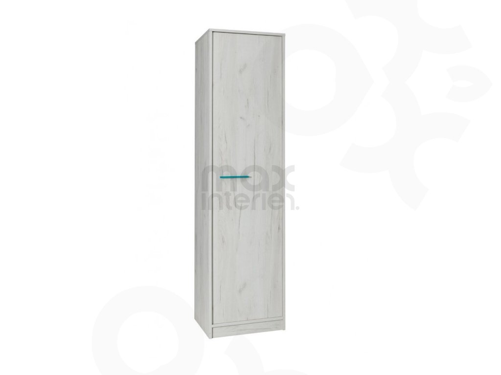 Výhodou je odolný LTD laminát s ABS hranou, který chrání povrch před vlhkostí i drobnými nárazy. Praktické rozměry (výška 195 cm, šířka 50 cm, hloubka 51 cm) zajistí dostatek úložného prostoru, aniž by skříň působila masivně.