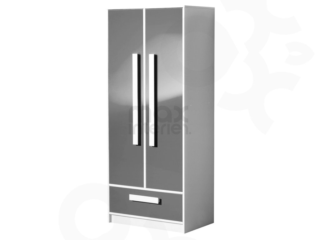 Šatní skříň GALIO 1 do dětského pokoje - bílá / šedá lesk