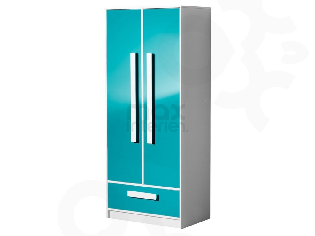 Šatní skříň GALIO 1 do dětského pokoje - bílá / tyrkys lesk