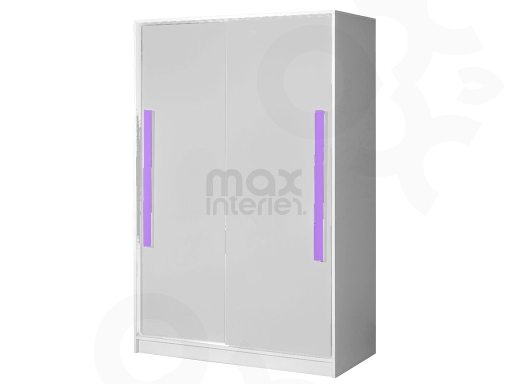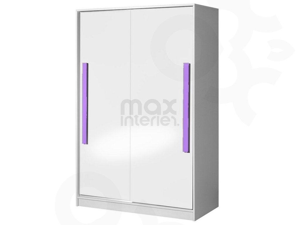 Šatní skříň GALIO 12 do dětského pokoje - bílá lesk / fialová