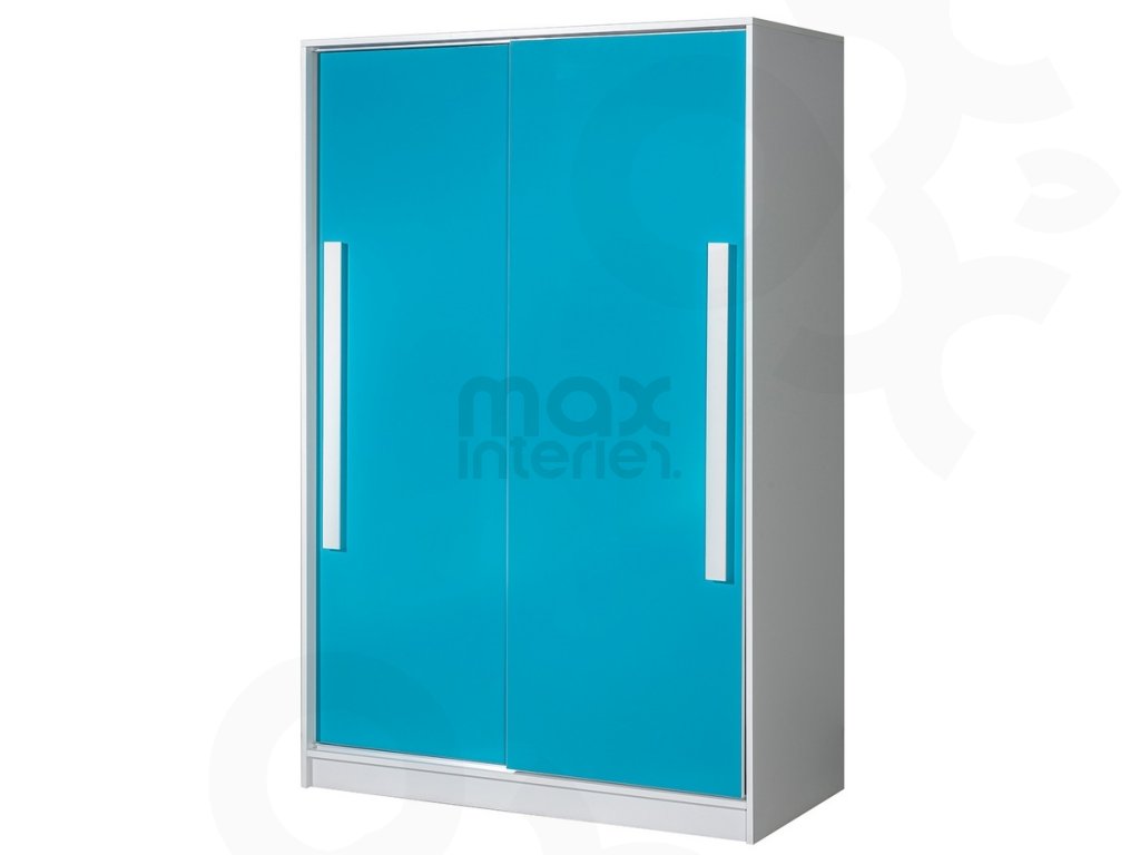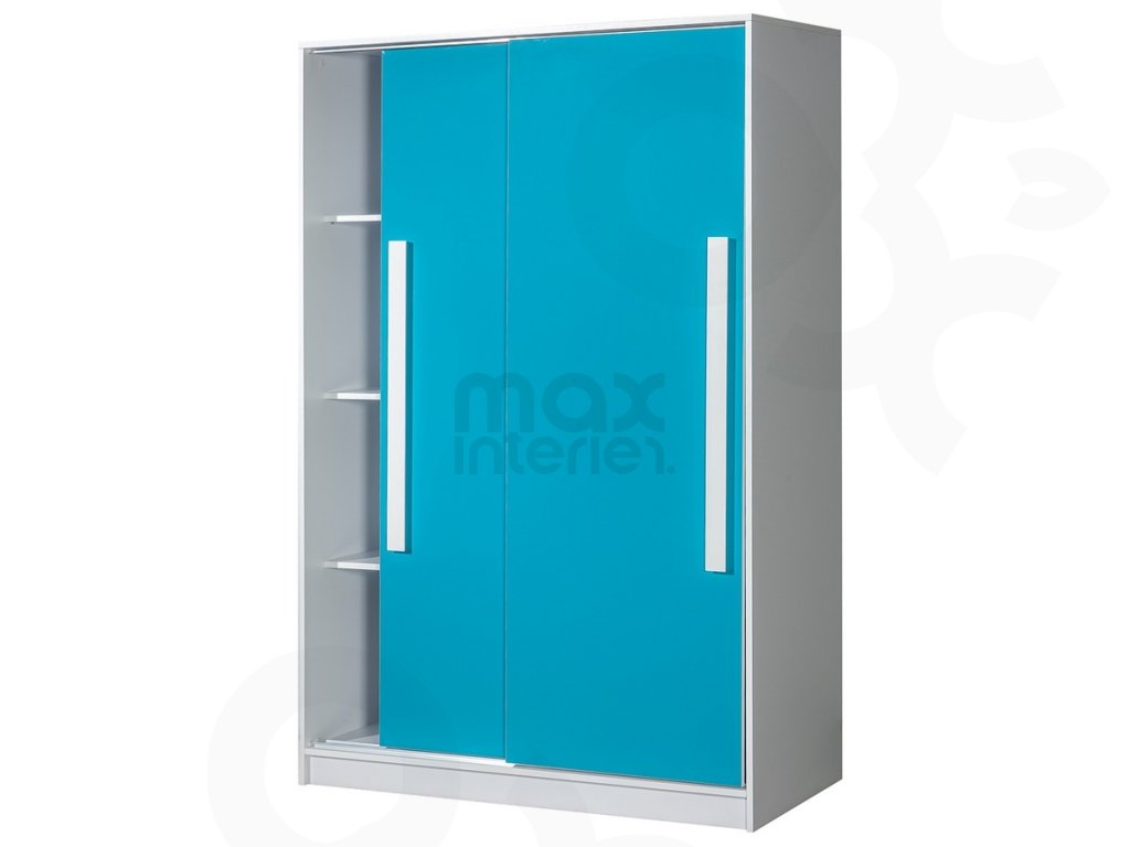 Šatní skříň GALIO 12 do dětského pokoje - bílá / tyrkys lesk