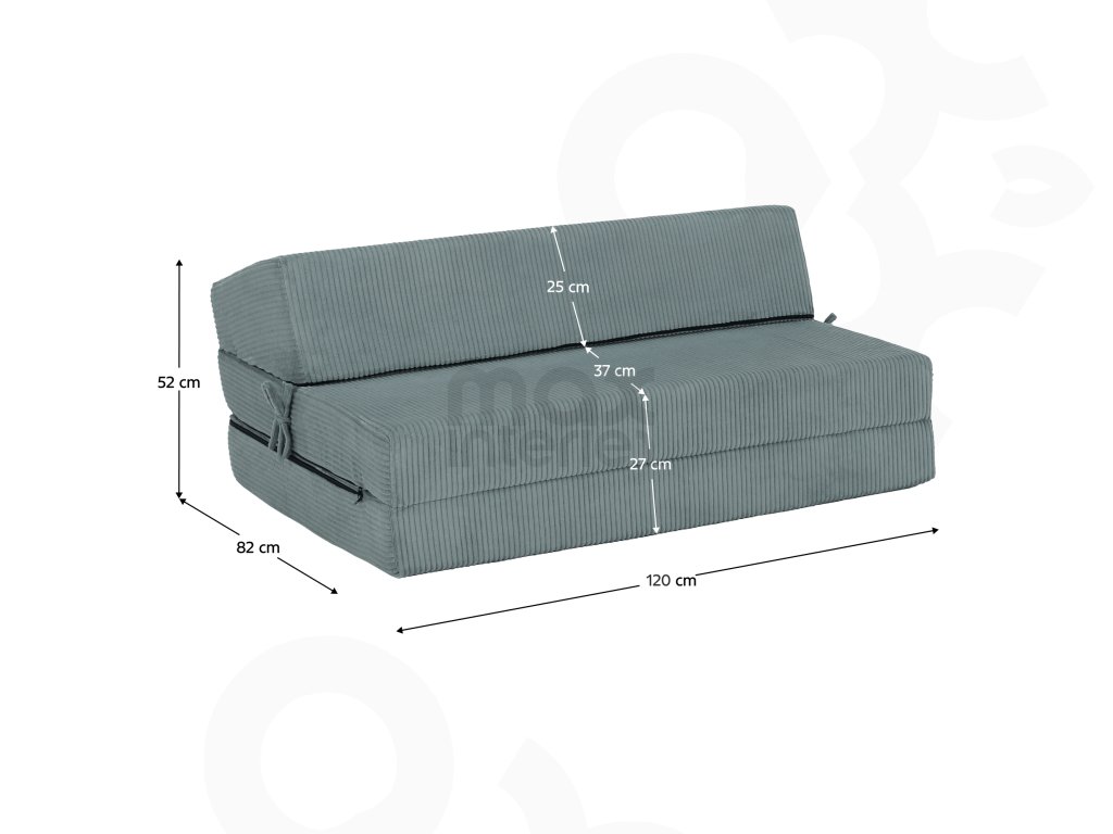 Matrace je vyrobena ze středně tvrdé pěny T25, která poskytuje optimální podporu těla a zachovává si tvar i při pravidelném používání. Výška matrace ve složeném stavu je 27 cm, po rozložení 13 cm. Profilovaná opěrka s jemným sklonem zajišťuje pohodlí při sezení i odpočinku.