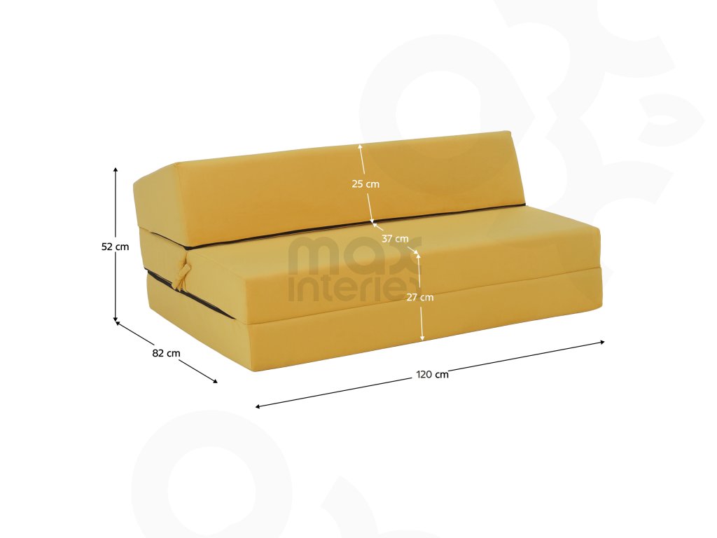 Skládací matrace AIRELL v zářivé žluté barvě je stylový a funkční doplněk do každého interiéru. Díky chytrému 2v1 provedení slouží jako pohodlné křeslo i plnohodnotné lůžko pro hosty. Rozměry ve složeném stavu jsou 120x82x52 cm, po rozložení vznikne komfortní plocha na spaní o velikosti 120x200 cm.