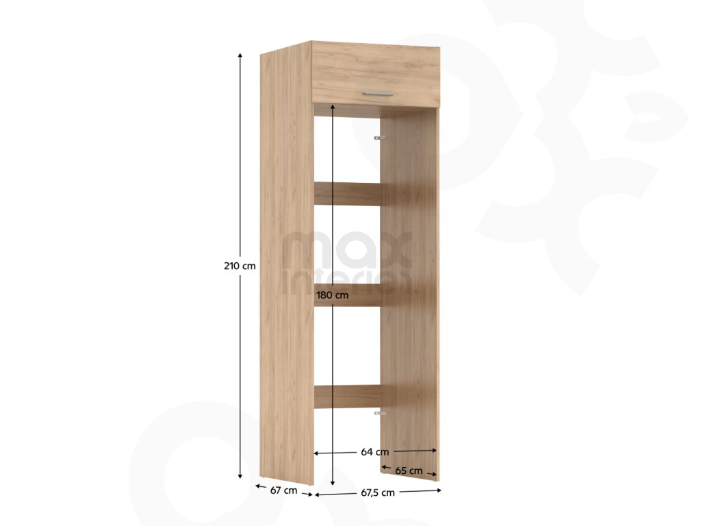 Efektivní využití prostoru: Rozměry 67,5 × 67 × 210 cm a prostor pro pračku a sušičku 64 × 65 × 180 cm umožňují optimální uspořádání i v menších místnostech.