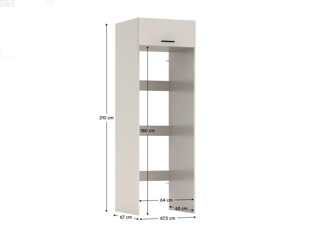 Efektivní využití prostoru: Rozměry 67,5 × 67 × 210 cm a prostor pro pračku a sušičku 64 × 65 × 180 cm umožňují optimální uspořádání i v menších místnostech.
