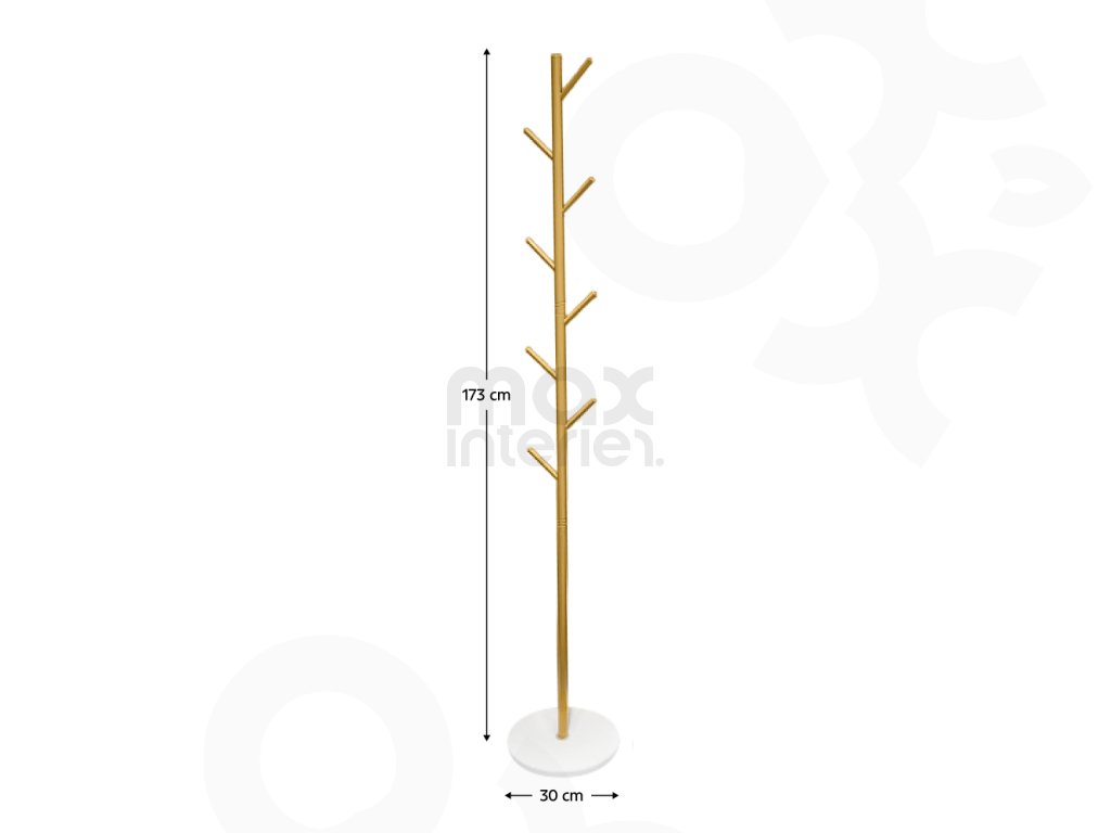 Stojací věšák BERNIE v kombinaci kovu a kamene přináší do vašeho domova eleganci i funkčnost. Moderní zlatobílý design ladí s různými styly interiéru a zároveň poskytuje stabilní a bezpečnou konstrukci pro každodenní použití.