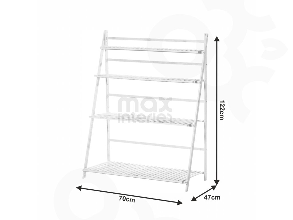 Stojan na květiny SKYE 2 v elegantní kombinaci bambusu a bílé barvy nabízí praktické a stylové řešení pro vystavení pokojových i venkovních rostlin. Díky čtyřem prostorným policím umožňuje přehledné uspořádání květin i dekorací a různé hloubky jednotlivých polic (14, 23, 33 a 43 cm) poskytují dostatek místa pro malé i větší květináče. Každá police má nosnost 10 kg, takže bez problémů unese i těžší rostliny.