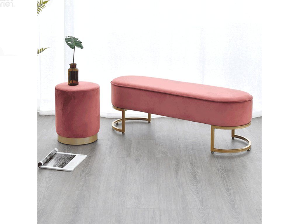 Taburet / Lavice BJOERN růžová Velvet / chrom-zlatý – styl a pohodlí pro váš interiér
