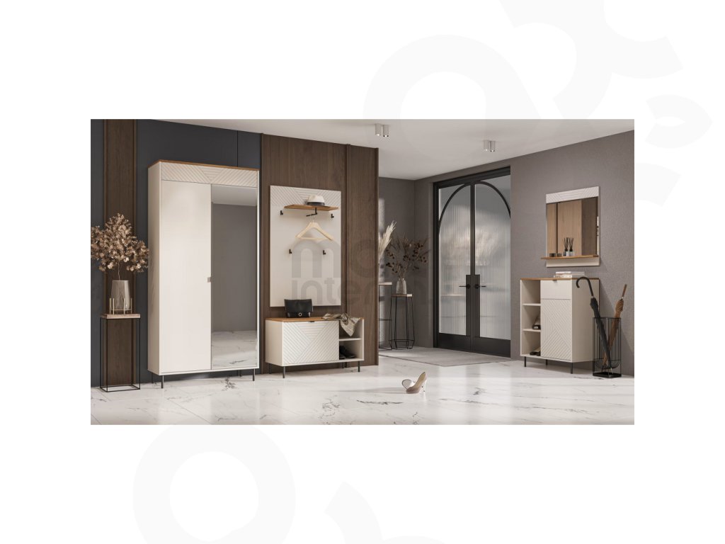 Věšákový panel ESCANOR kombinuje moderní design s praktickým uspořádáním prostoru pro oblečení, kabáty a doplňky.