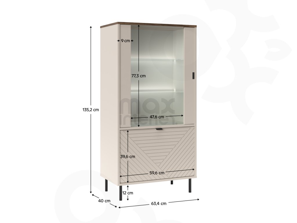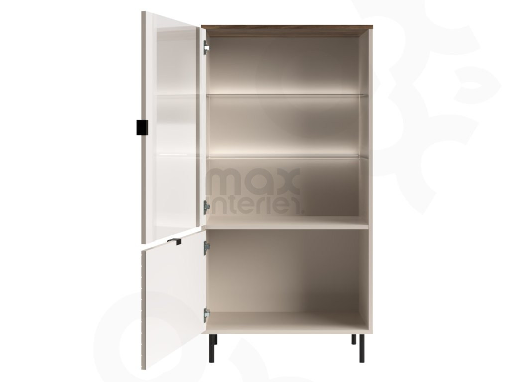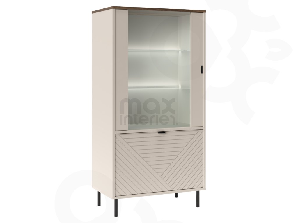 Vitrína ESCANOR 1D1W kašmír / dub castello – moderní úložný prostor pro váš interiér
