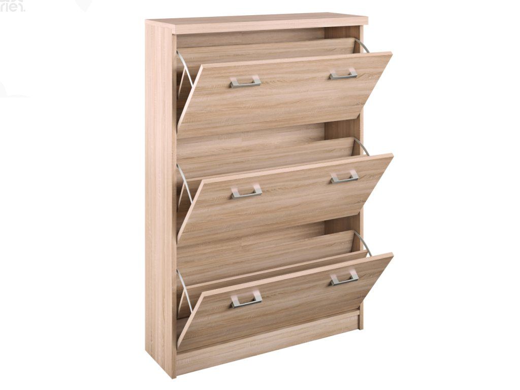 Úzká hloubka dovoluje umístění i do menších předsíní, kde každý centimetr prostoru hraje roli. Dekor dub sonoma působí svěže a snadno se kombinuje s ostatním nábytkem. Laminovaná DTD je známá svou nenáročnou údržbou a dlouhou životností, což zaručuje, že botník si zachová svůj vzhled i při každodenním používání. Tři výklopy umožňují praktické a organizované ukládání obuvi bez zbytečného přeplňování prostoru.