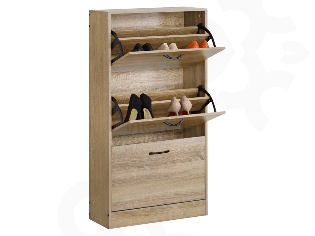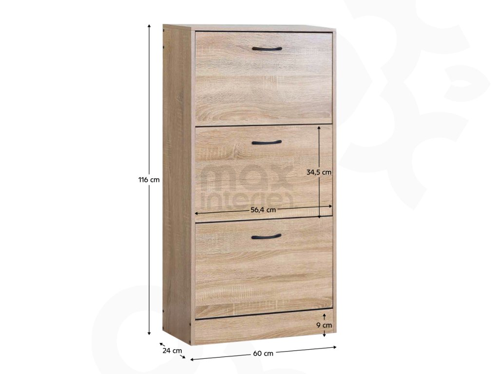 Objevte praktický a stylový Výklopný botník NEILAN v barvě dub sonoma, který kombinuje moderní design s maximální funkčností. Tento elegantní botník o rozměrech 60x24x116 cm je ideální pro každý vstupní prostor či předsíň. Díky třem výklopným šuplíkům, každý rozdělený na dvě části, uspořádáte své boty přehledně a efektivně. Spodní prostor botníku od podlahy má 9 cm, což umožňuje uskladnit i vyšší obuv. Robustní konstrukce zajišťuje stabilitu a dlouhou životnost – nosnost výklopného šuplíku je 6 kg a vrchní desky až 10 kg. Moderní dubový dekor se snadno kombinuje s různými interiéry a přináší pocit tepla a útulnosti. Praktický, moderní a elegantní – botník NEILAN je dokonalým řešením pro každou domácnost.