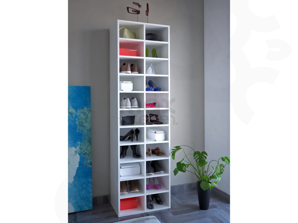Vysoký regál / botník IGNO – bílý, víceúčelový úložný prostor s praktickým designem