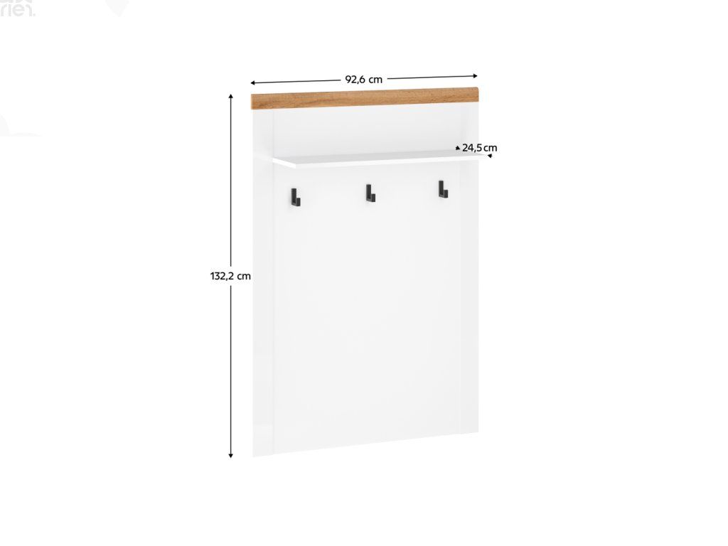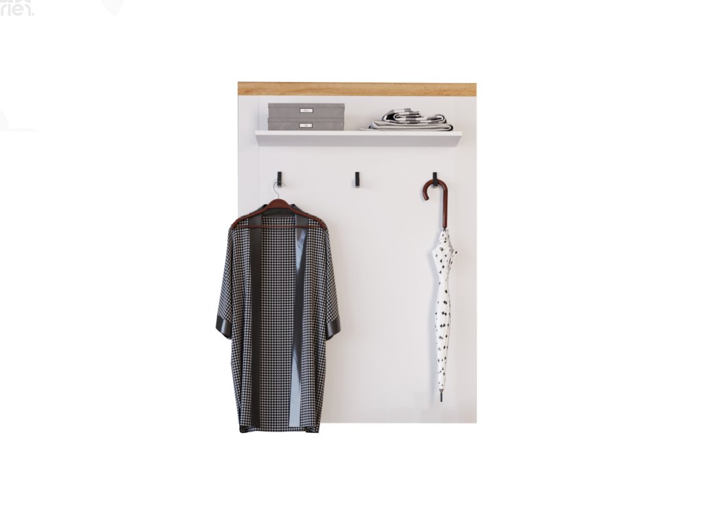 Závěsný věšák / věšákový panel SHALISE – bílý / dub wotan